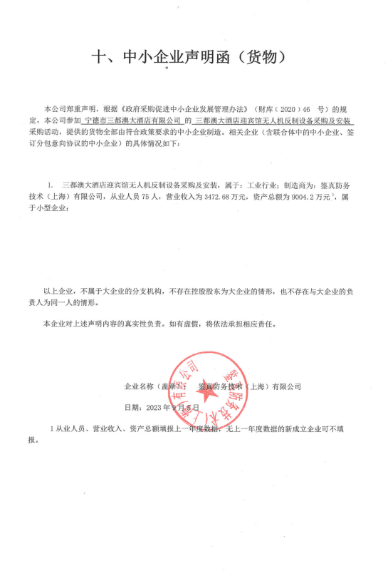 二、項(xiàng)目名稱:三都澳大酒店迎賓館無人機(jī)反制設(shè)備采購及安裝